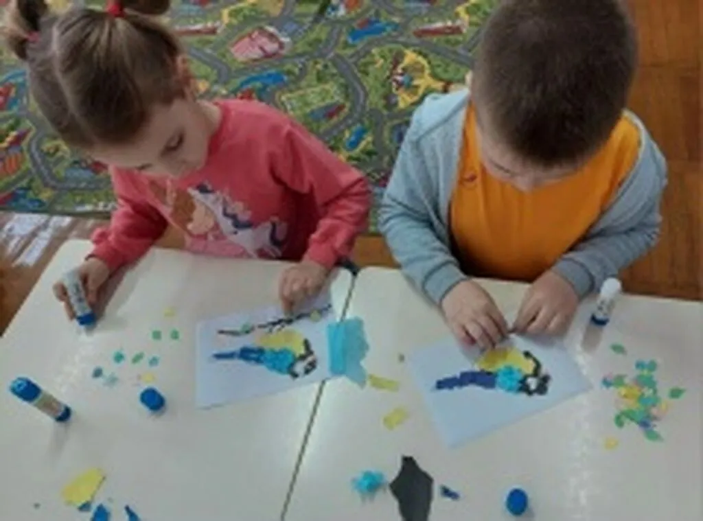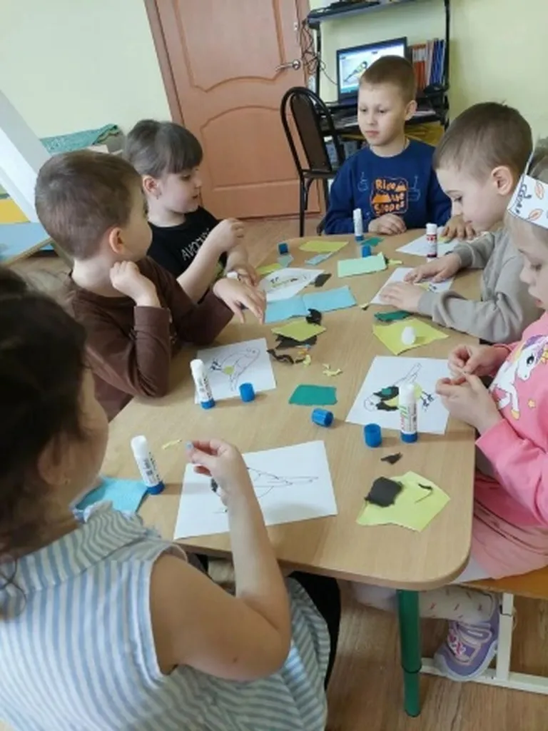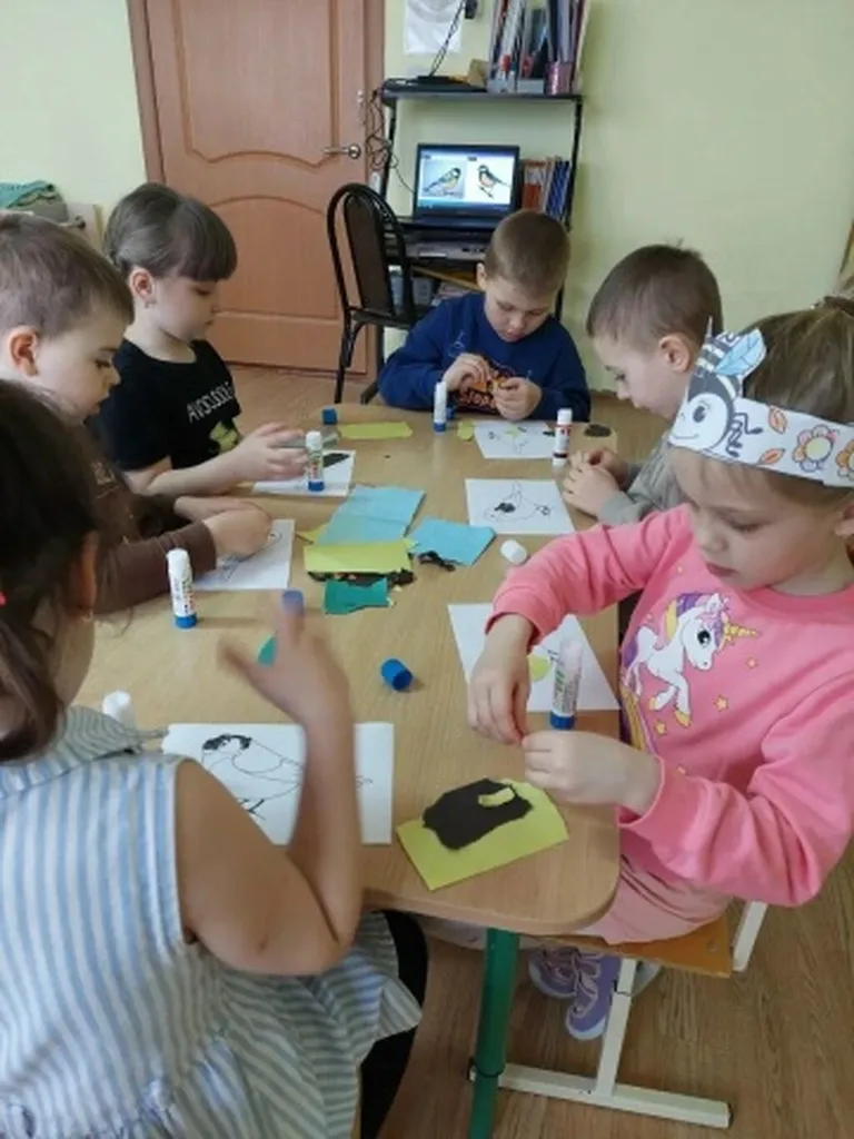 Вооружившись бумагой и клеем, каждый дошколёнок сделал аппликацию — своего пернатого друга.